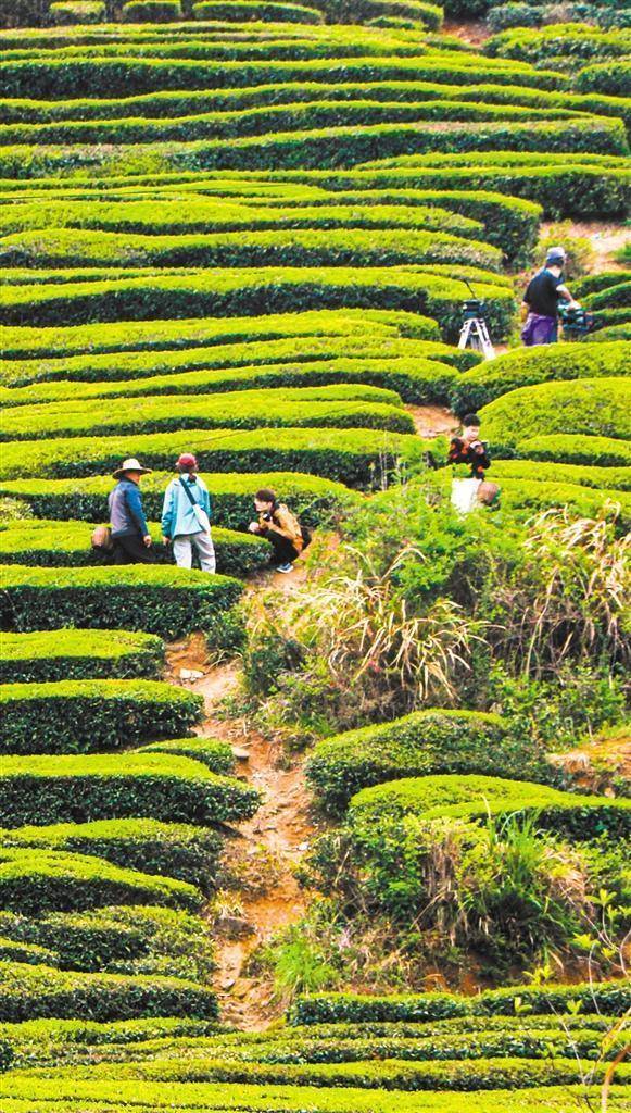 4月16日,浙江湖州市长兴县林城镇畎桥村“天空的茶”景区,游客在休闲赏景。