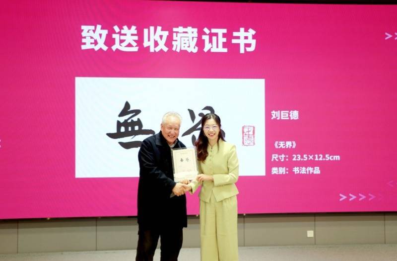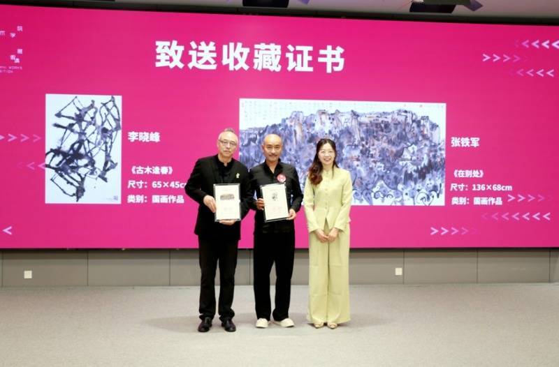 现场还举行了庄重的作品收藏仪式。参展艺术家刘巨德、李晓峰、张铁军为表示对紫荆文化美术馆的感谢,决定向美术馆赠予个人代表作品。朱敏女士代表美术馆向艺术家们致以谢意并致送收藏证书,以示永久珍藏之意。